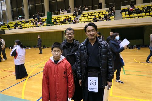 剣道段位審査会が開催され、岬少剣のお父さん剣士波多野さんが初段の合格しました。